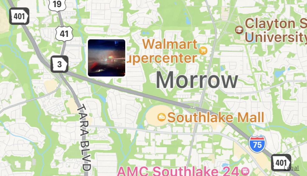 | We were driving home in pretty heavy Saturday evening traffic on I-75 just north of Morrow nearing Tara Boulevard... |